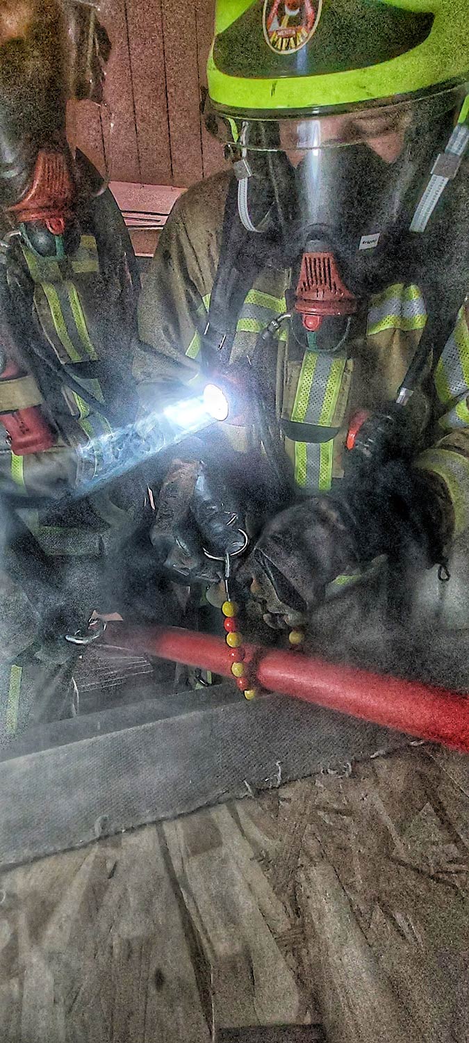 EPI fournis : veste et pantalon de feu, casque, gants, ARI.